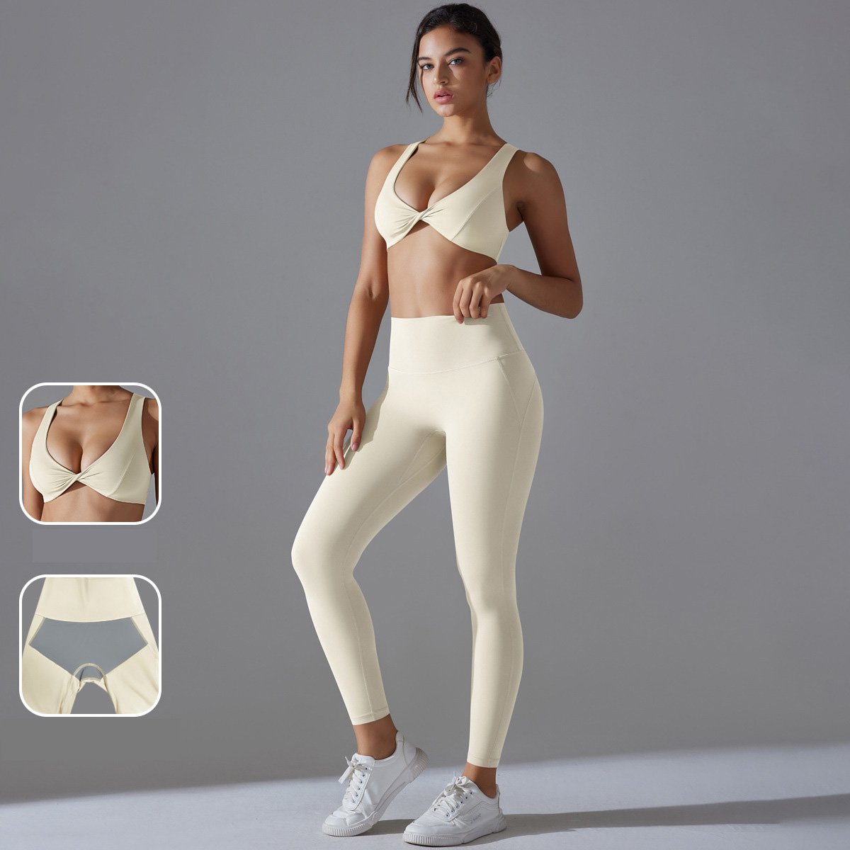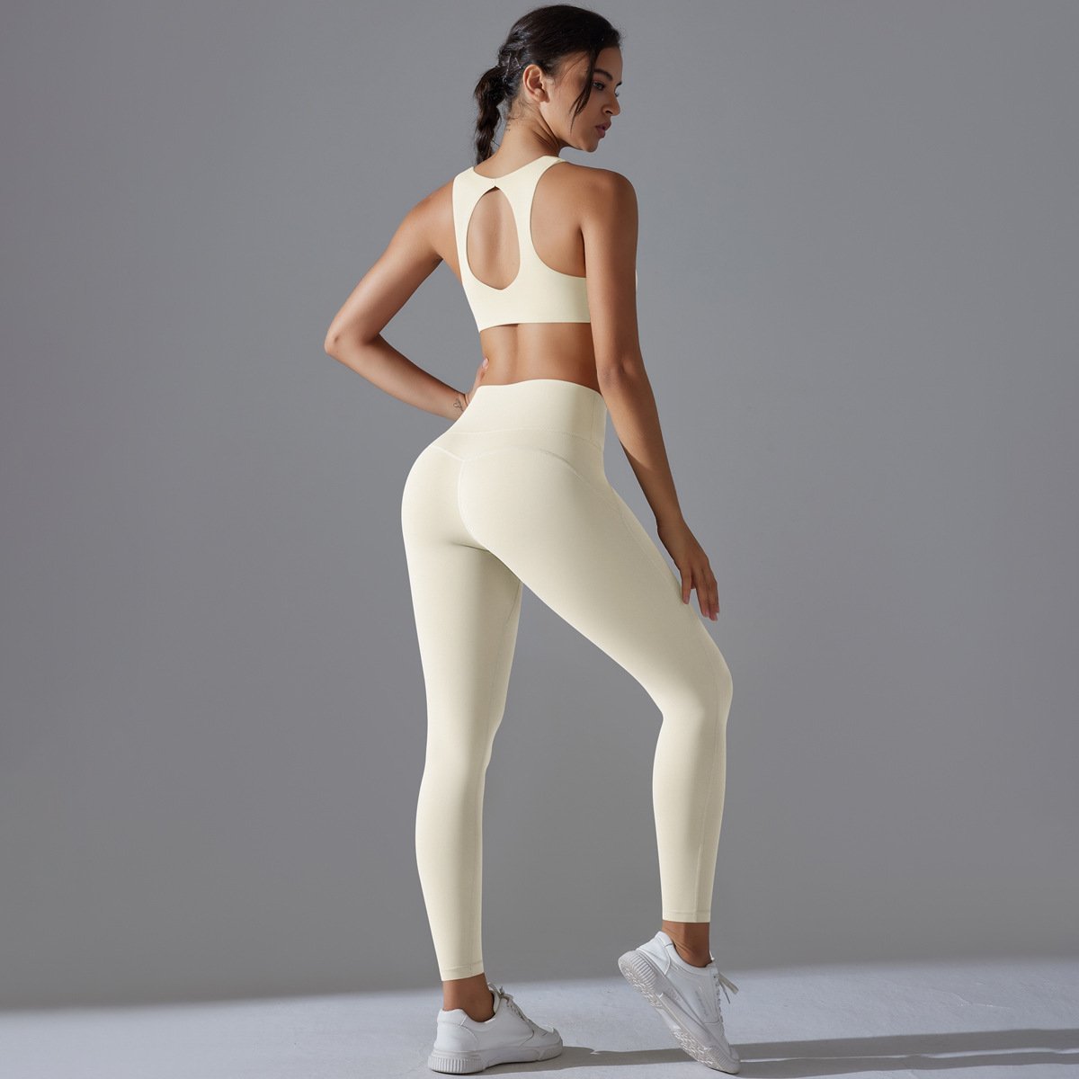 Anti-bacterial High-elastic Tight Fitness Yoga Set with Double-sided Brocade and Beautiful Back Design for Sports and Yoga